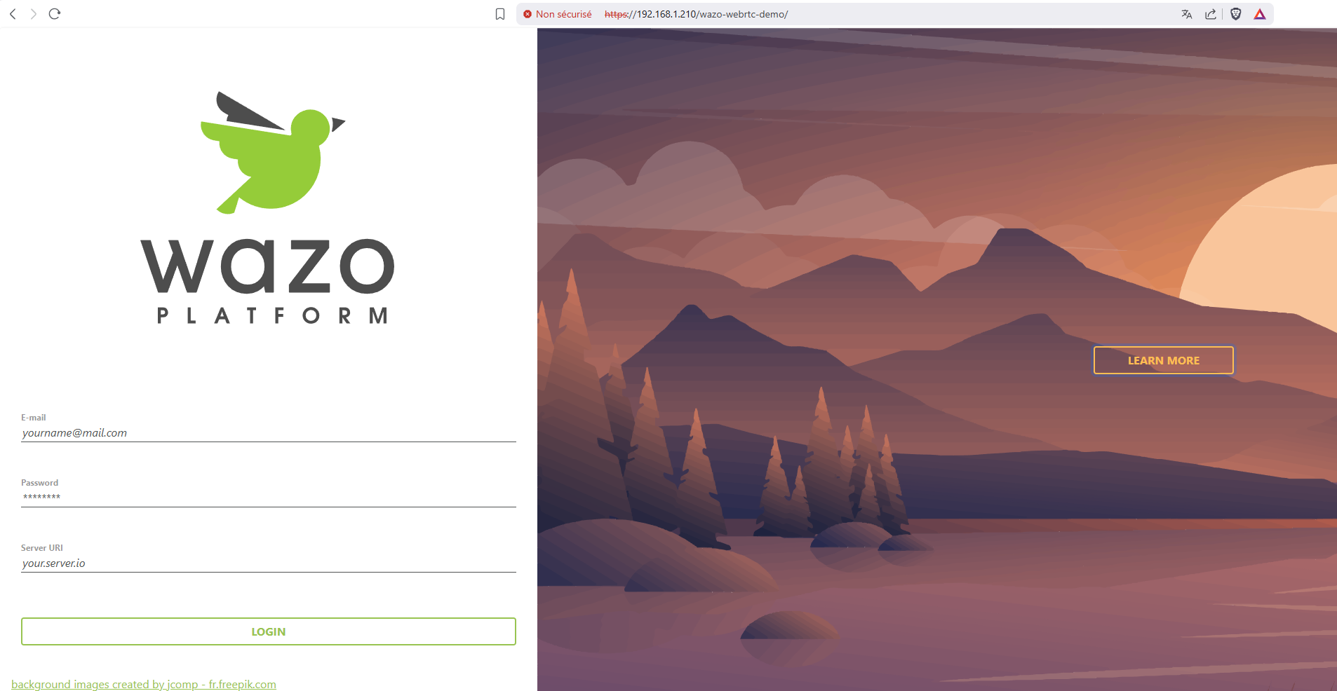 Ensuite, on se peut se connecter en web sur https://IP_SRV/wazo-webrtc-demo