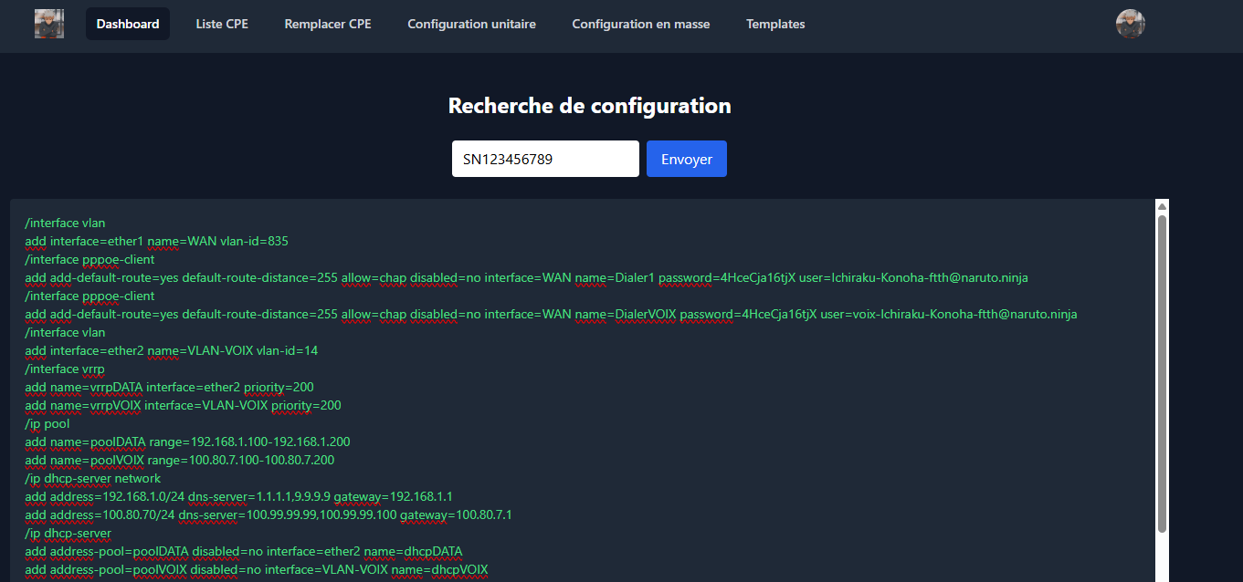 Donc au final, ce développement a permis d'automatiser toute production CPE (qu'importe l'architecture). Il serait donc intéressant par la suite de produire les autres équipements (firewall, etc). Malheureusement, je ne vais pas pouvoir étant donné que les constructeurs s'en foutent des lab lol (cc forti) mais si j'étais opérateur, j'aurai bien sûr automatisé cela. Même si au final, fortimanager est déjà mal (peut-être juste créer les devices automatiquement via call api fmg 😄).