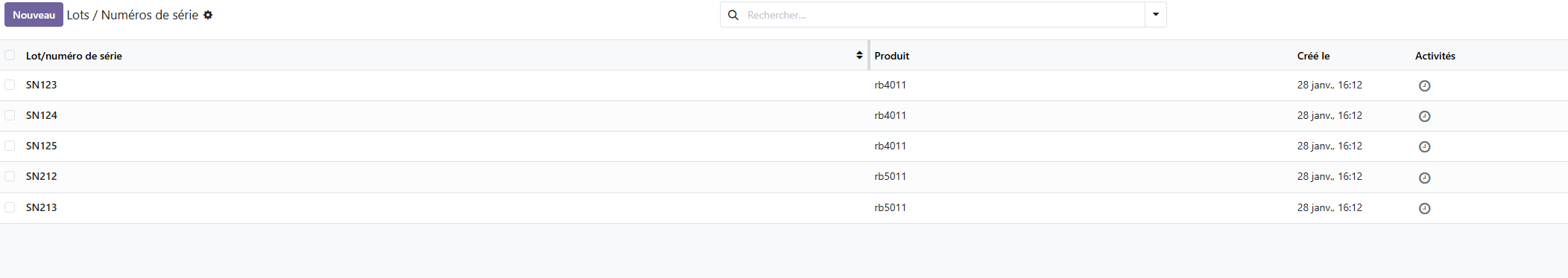 Ensuite, on remplit les numéros de séries des CPE dans Lot/numéros de série (en haut a droite) :