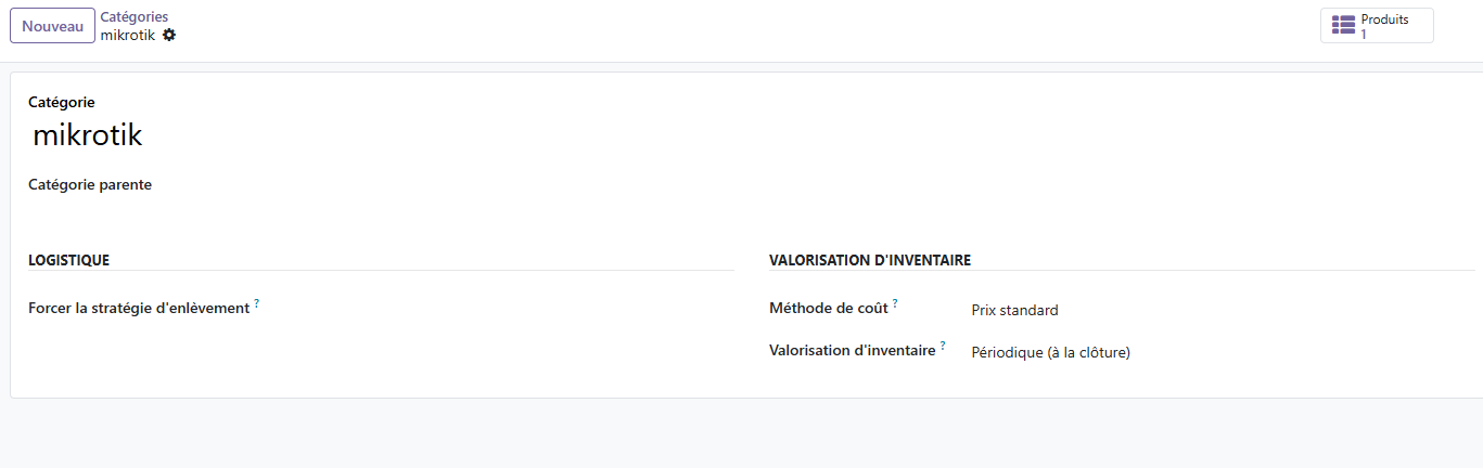 Ensuite, on crée une catégorie mikrotik. J'utilise cela pour pouvoir indiquer le constructeur du CPE. Admettons, on propose des CPE Cisco, la configuration sera différente (via l'API) donc on pourra crée une autre catégorie Cisco.