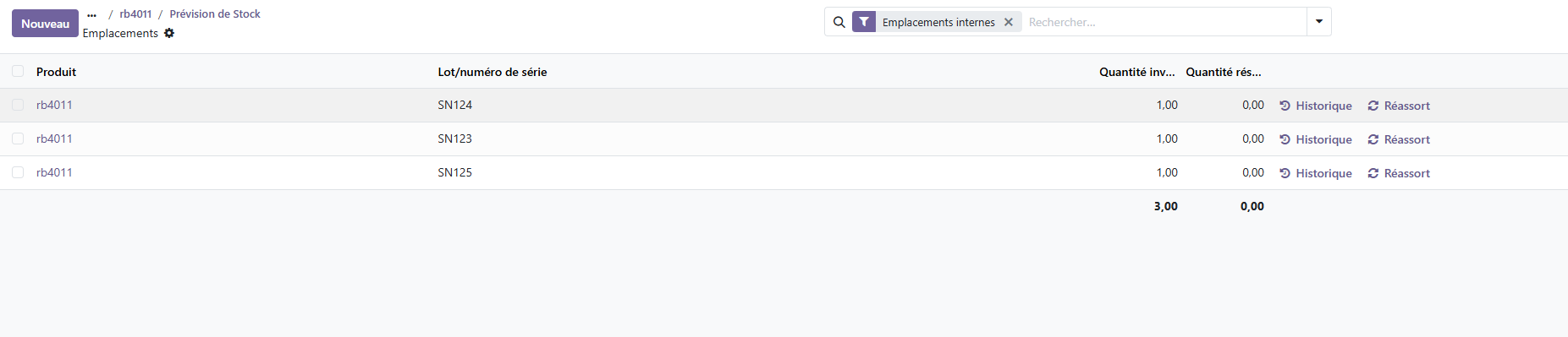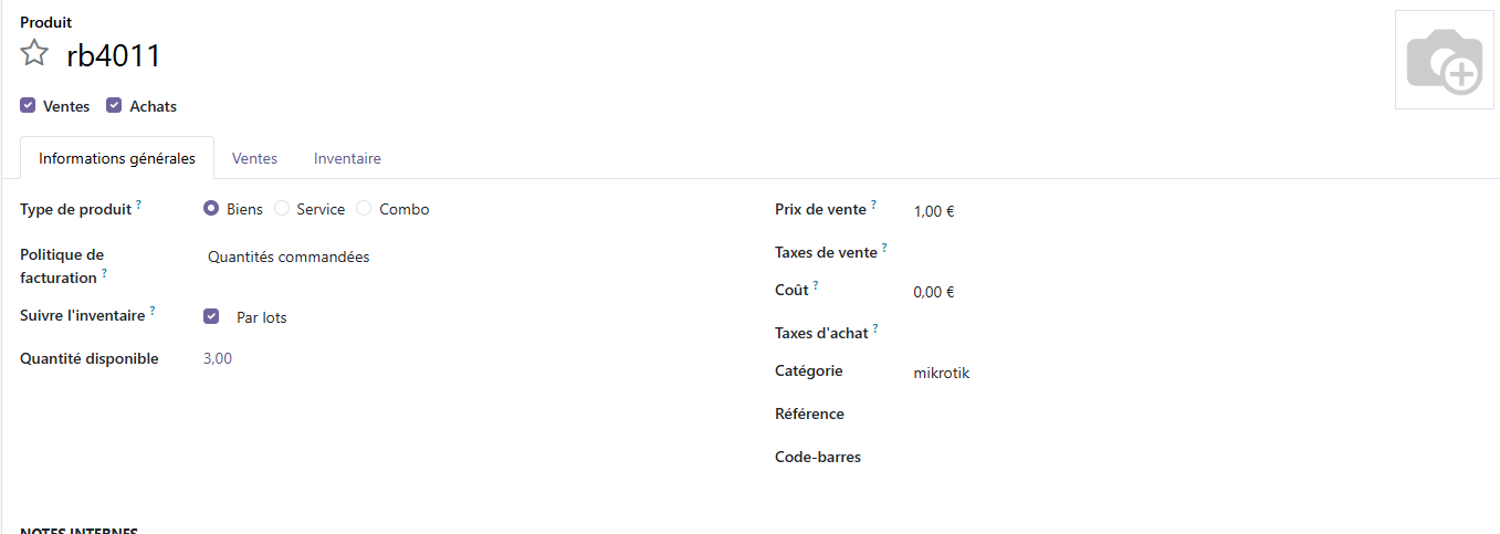 Notre application inventaire semble être pas mal. Si on rajoute un CPE RB4011, la quantité s'incrémente. Et si on en utilise un, le module custom viendra supprimer (archiver) le CPE pour décrémenter le stock.