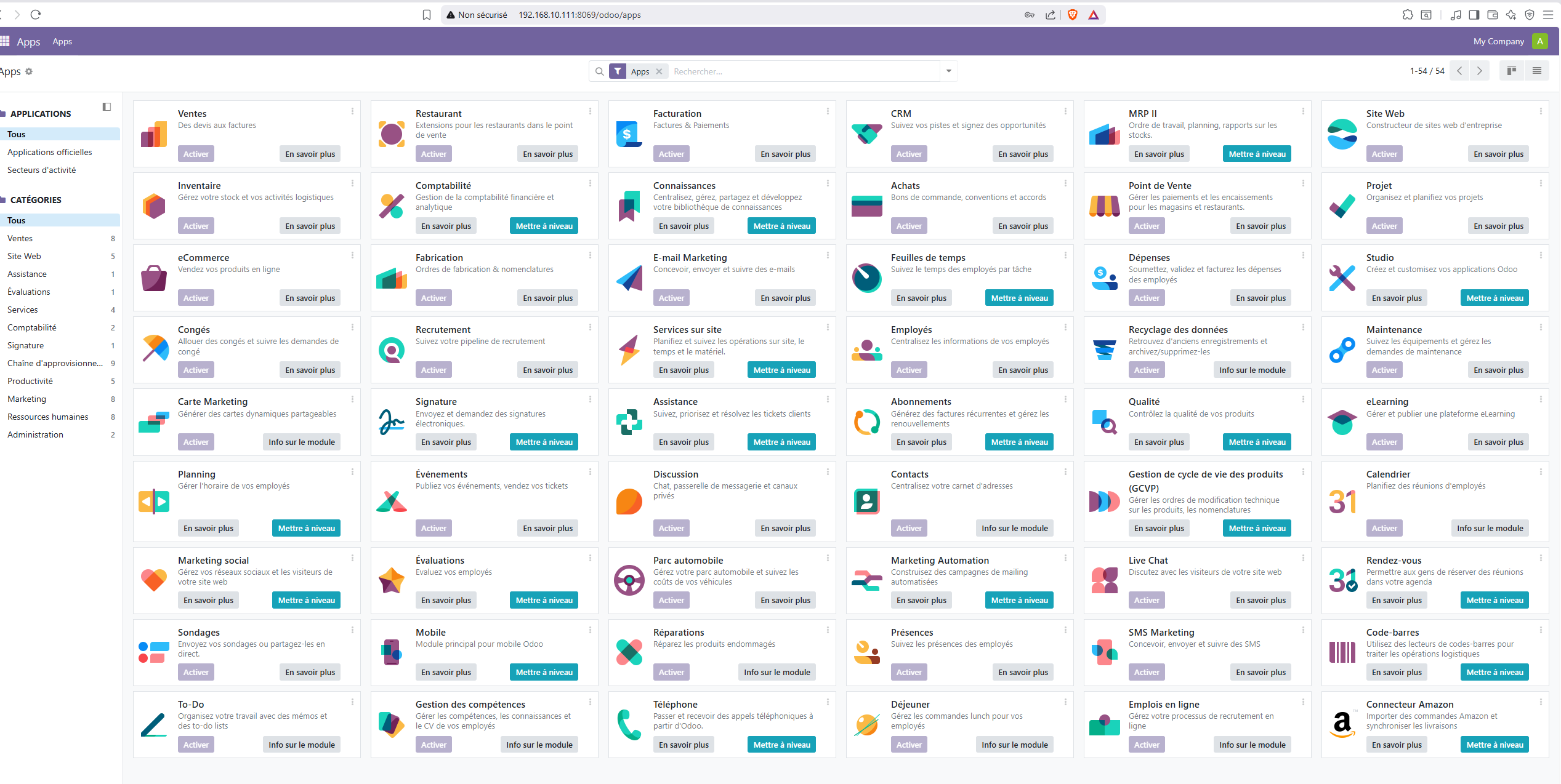 Je sais que je n'ai pas intégré à 100% Odoo (à peine 10%) et je ne le ferai pas dans mon lab. Cela me prendrait des heures, des jours. Énormément de travail pour au final ne rien pouvoir tester car je n'ai pas le matos.