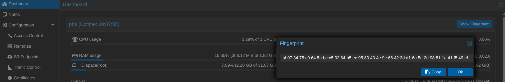 Et avant de partir, on copie colle le fingerprint !