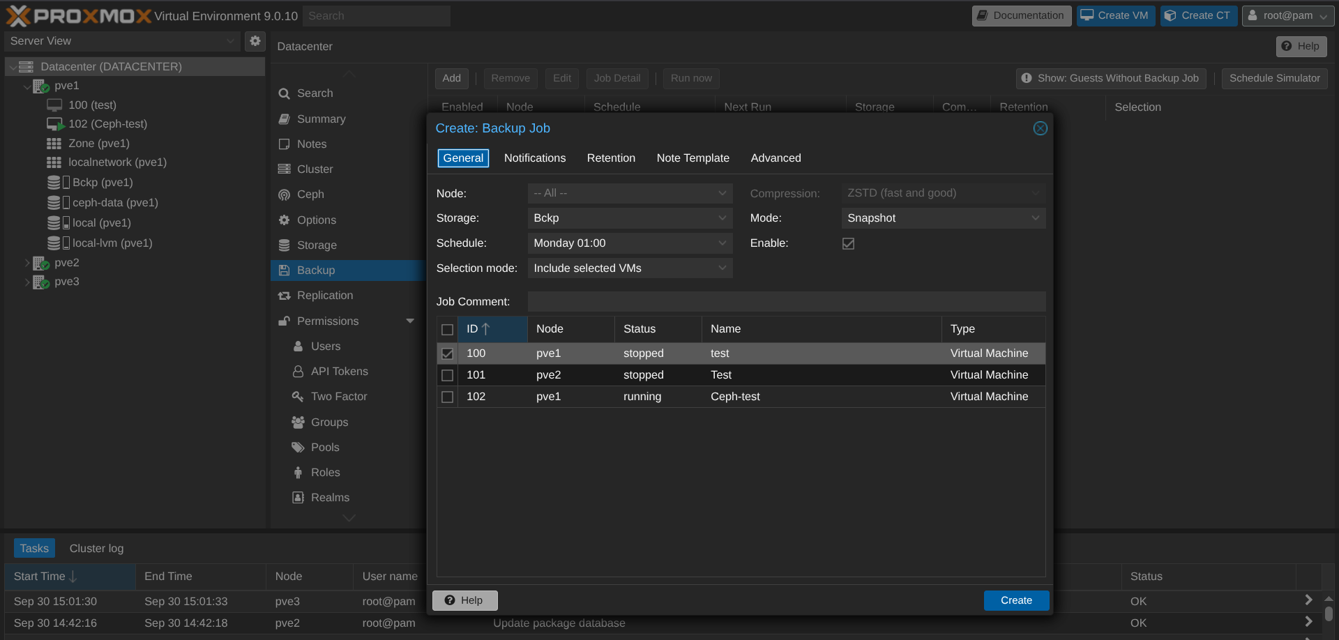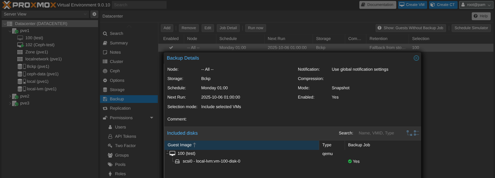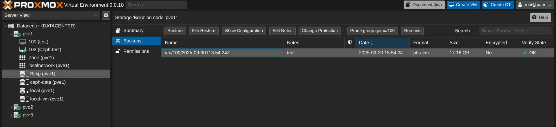 Concernant PBS, je trouve l'outil simpliste. On voit bien que c'est conçu pour proxmox (et c'est logique vous me direz). L'installation et le linkage avec le cluster est enfantine. Certes j'ai pris les paramètres par défaut mais je suppose qu'on peut pousser plus loin mais, en attendant de convaincre une certaine personne, je pense que cette infrastructure tient la route. Un cluster bien dimensionné, du réseau EVPN/VXLAN sur chaque node vers la fabric Arista, du ceph et des backup ...